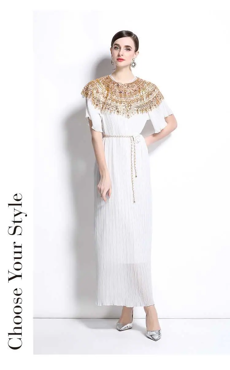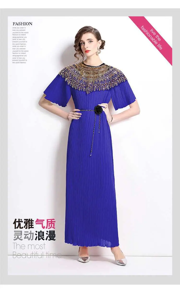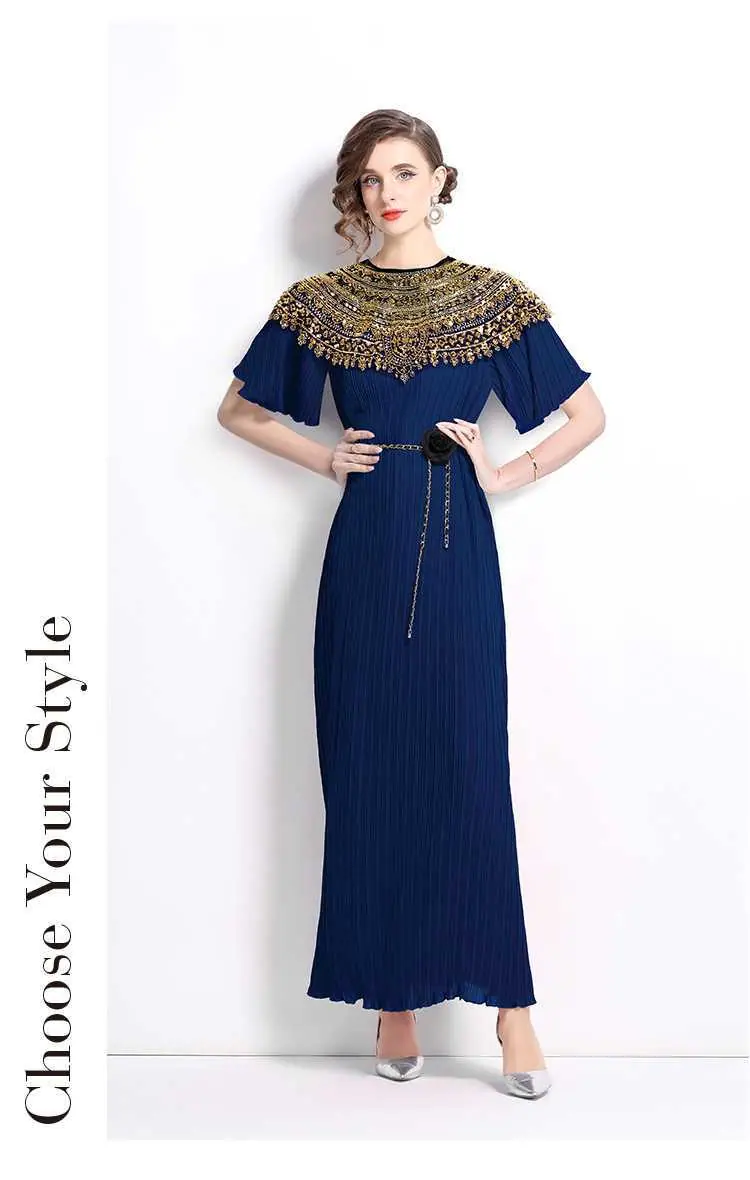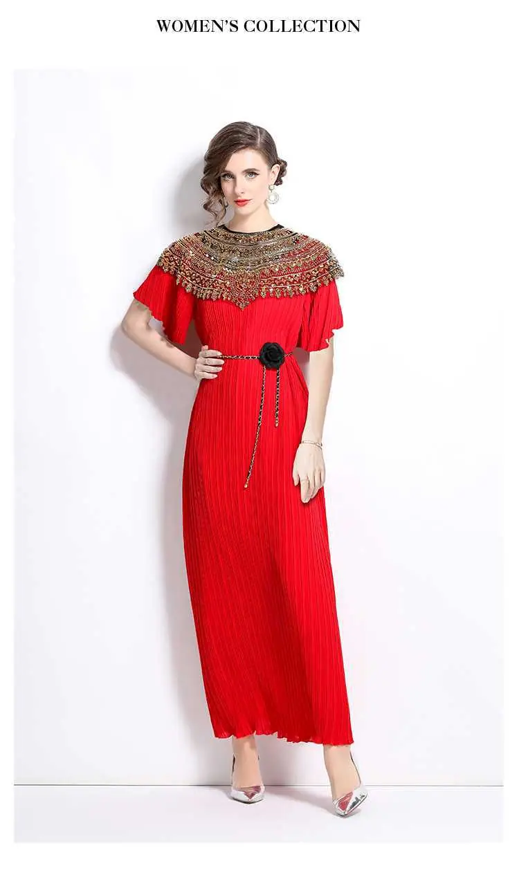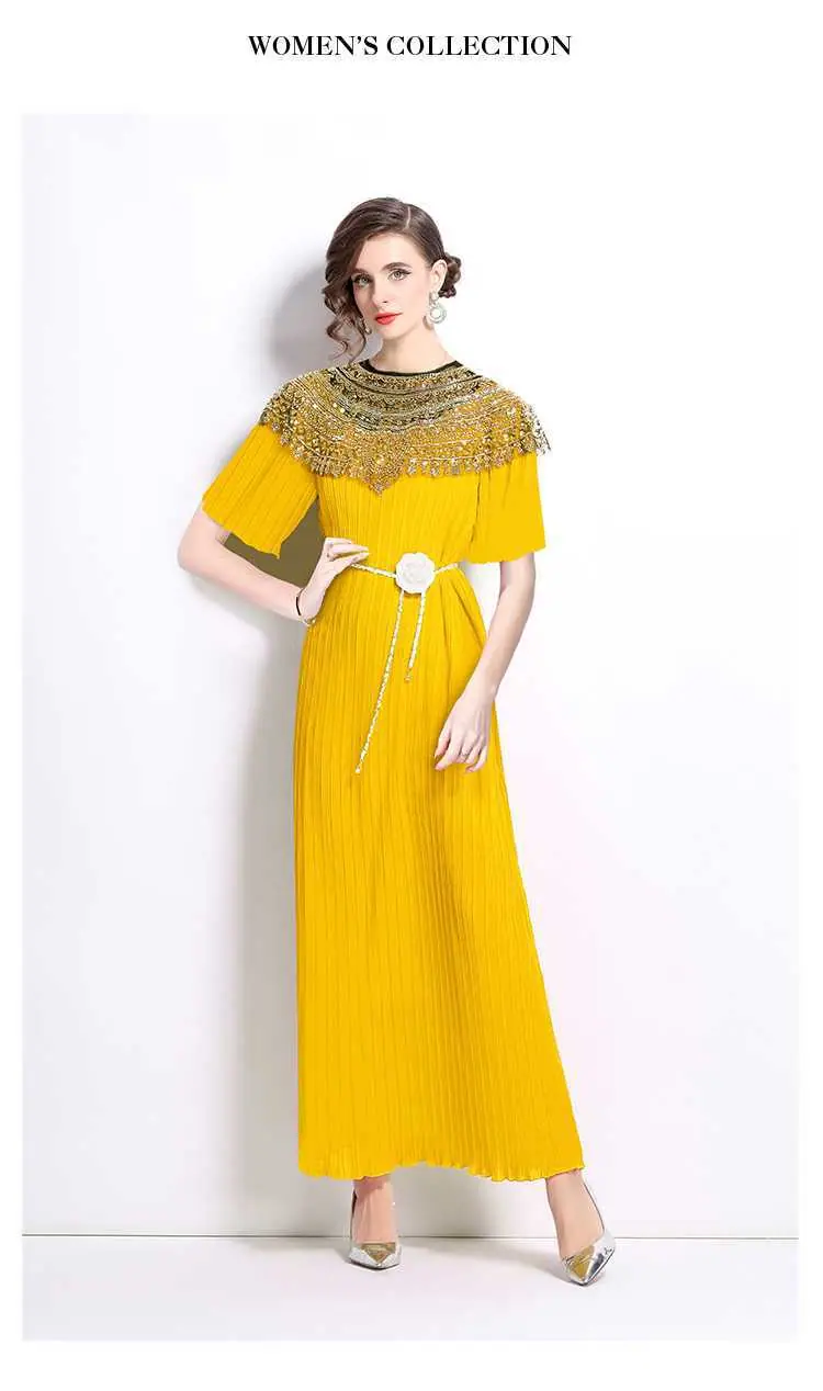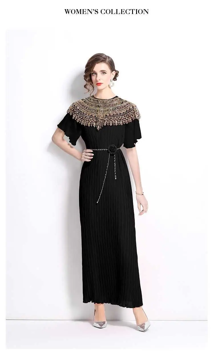 Vestido de Noite de Alta Costura Estilo Socialite 2025 Pesado Bordado Manga Lanterna Plissado Solto Longo