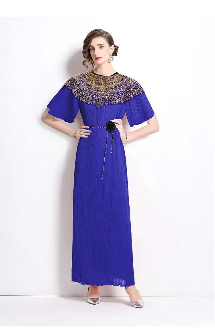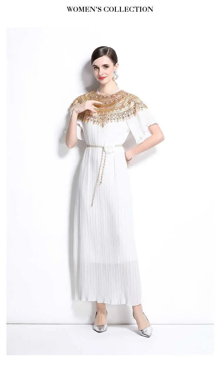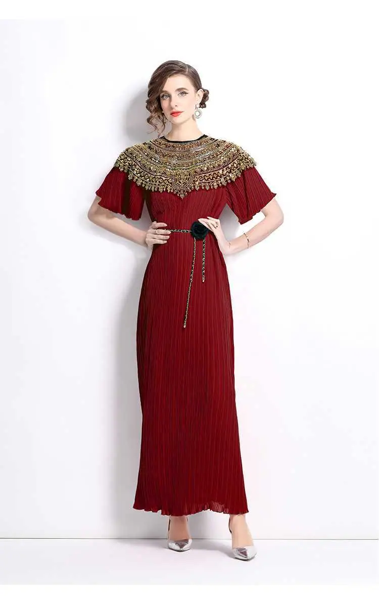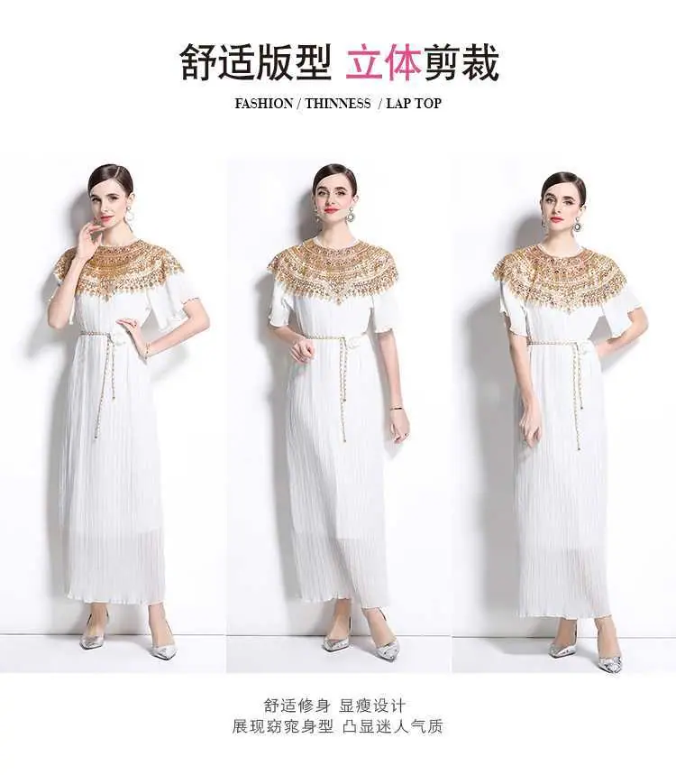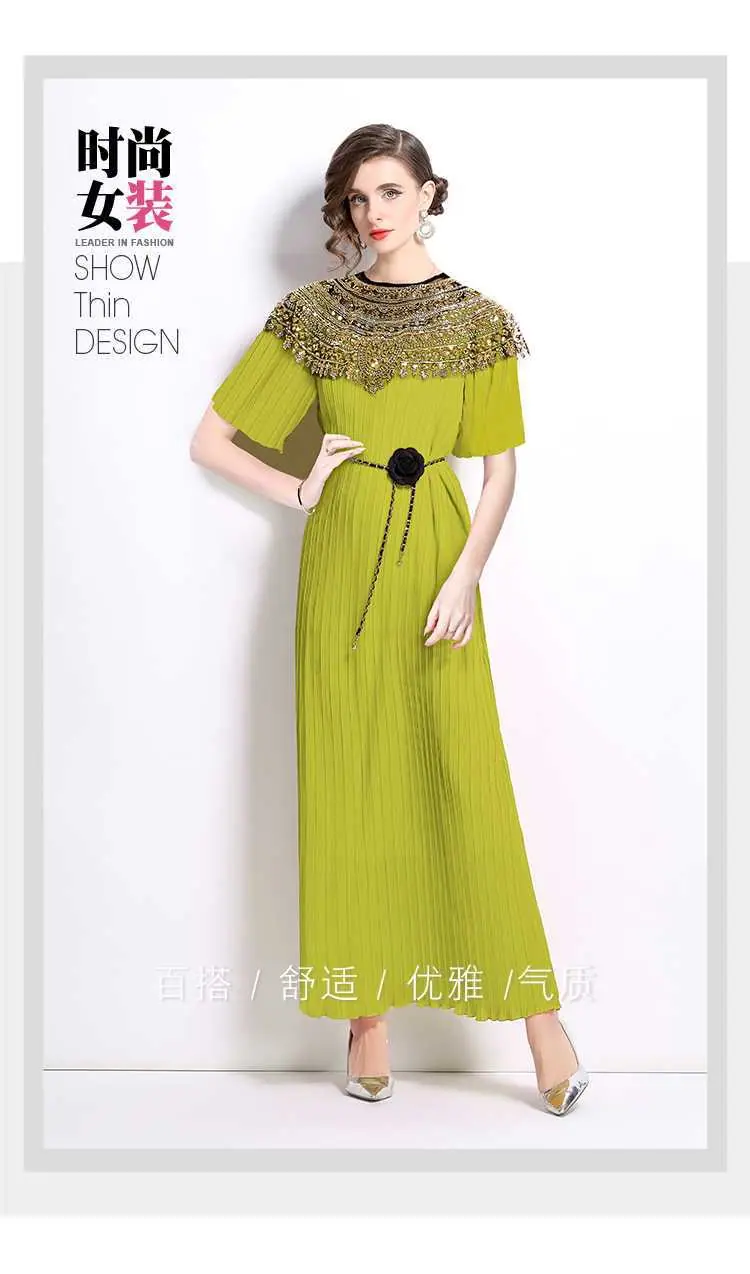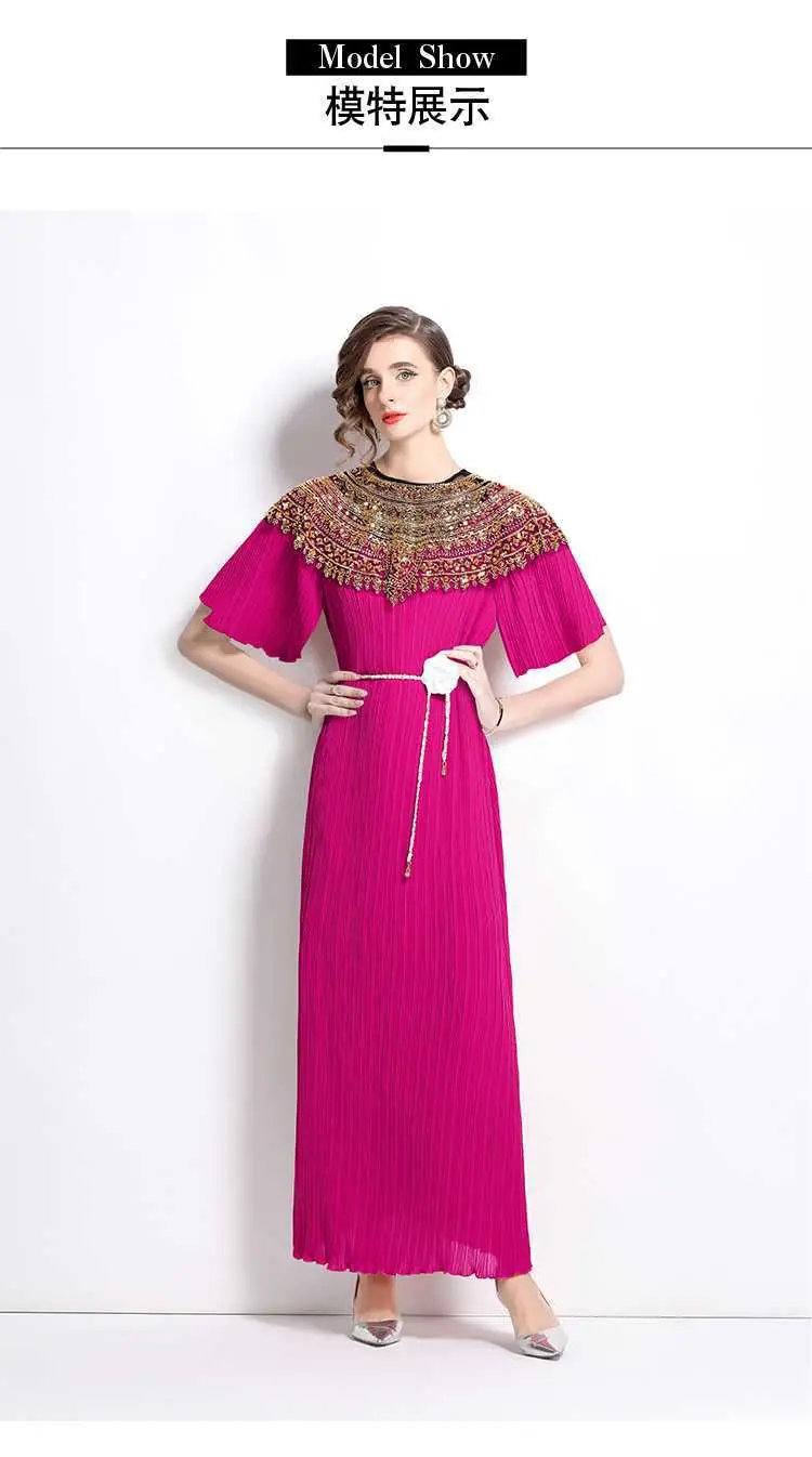 Vestido de Noite de Alta Costura Estilo Socialite 2025 Pesado Bordado Manga Lanterna Plissado Solto Longo