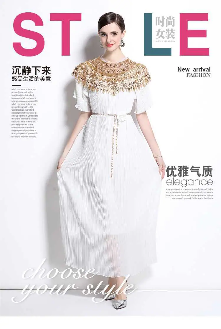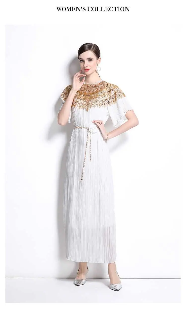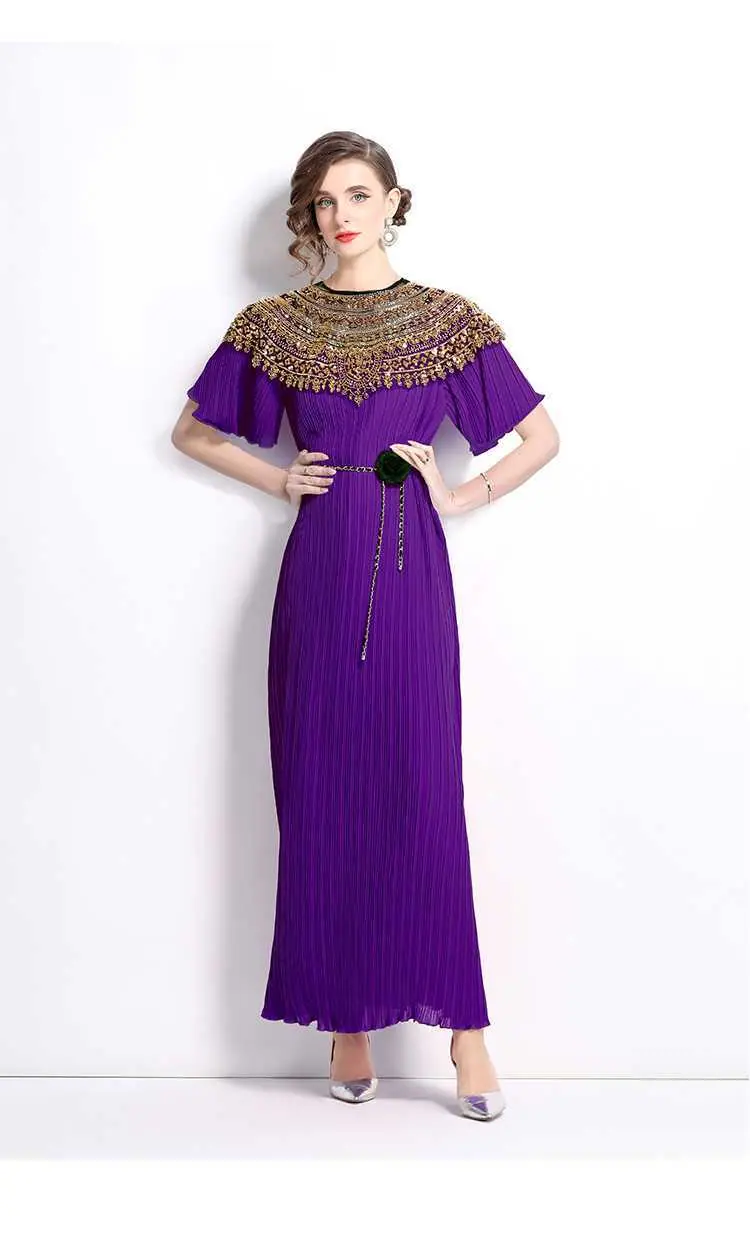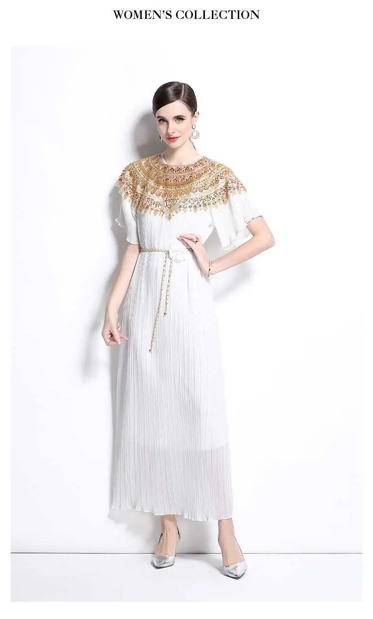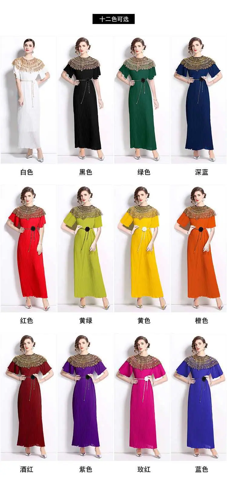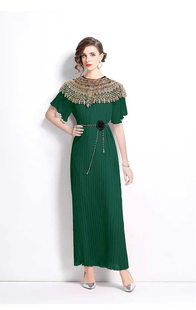 Vestido de Noite de Alta Costura Estilo Socialite 2025 Pesado Bordado Manga Lanterna Plissado Solto Longo