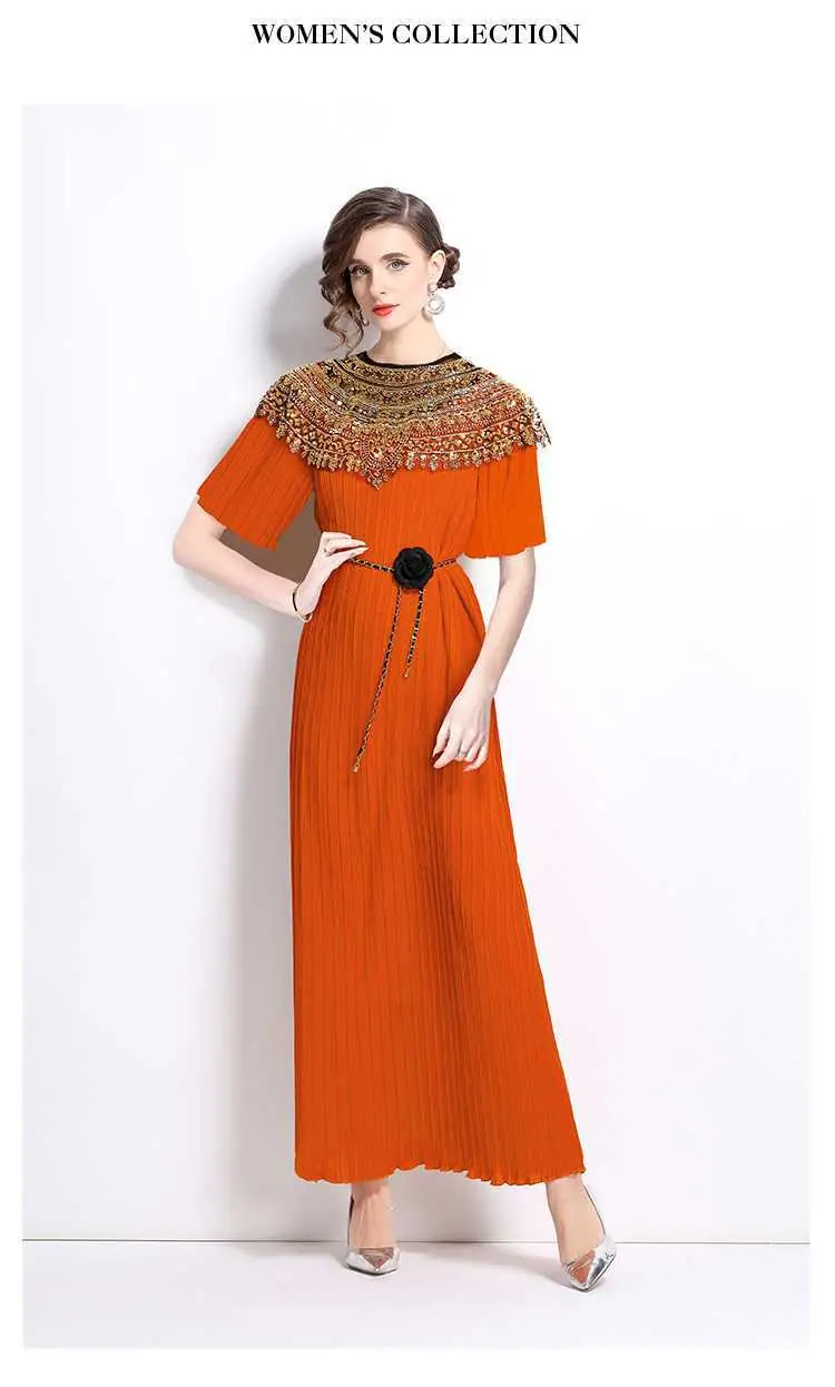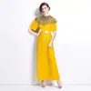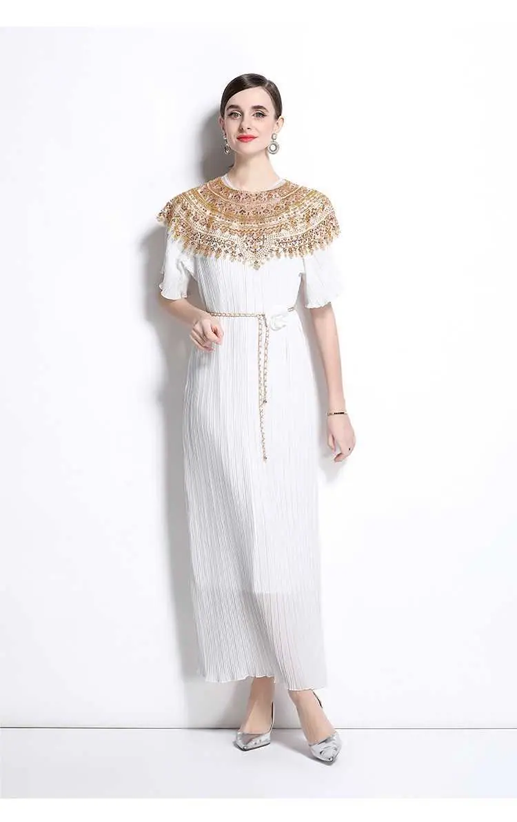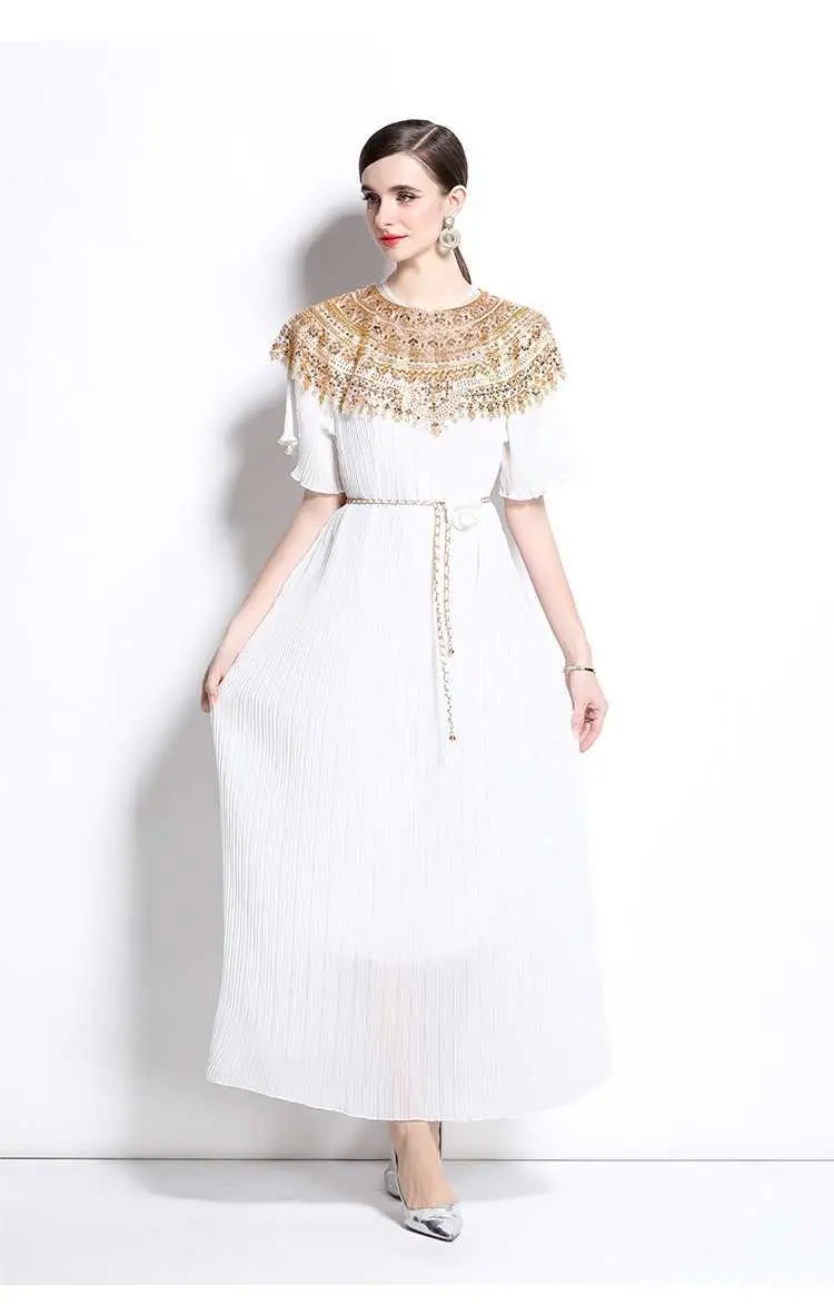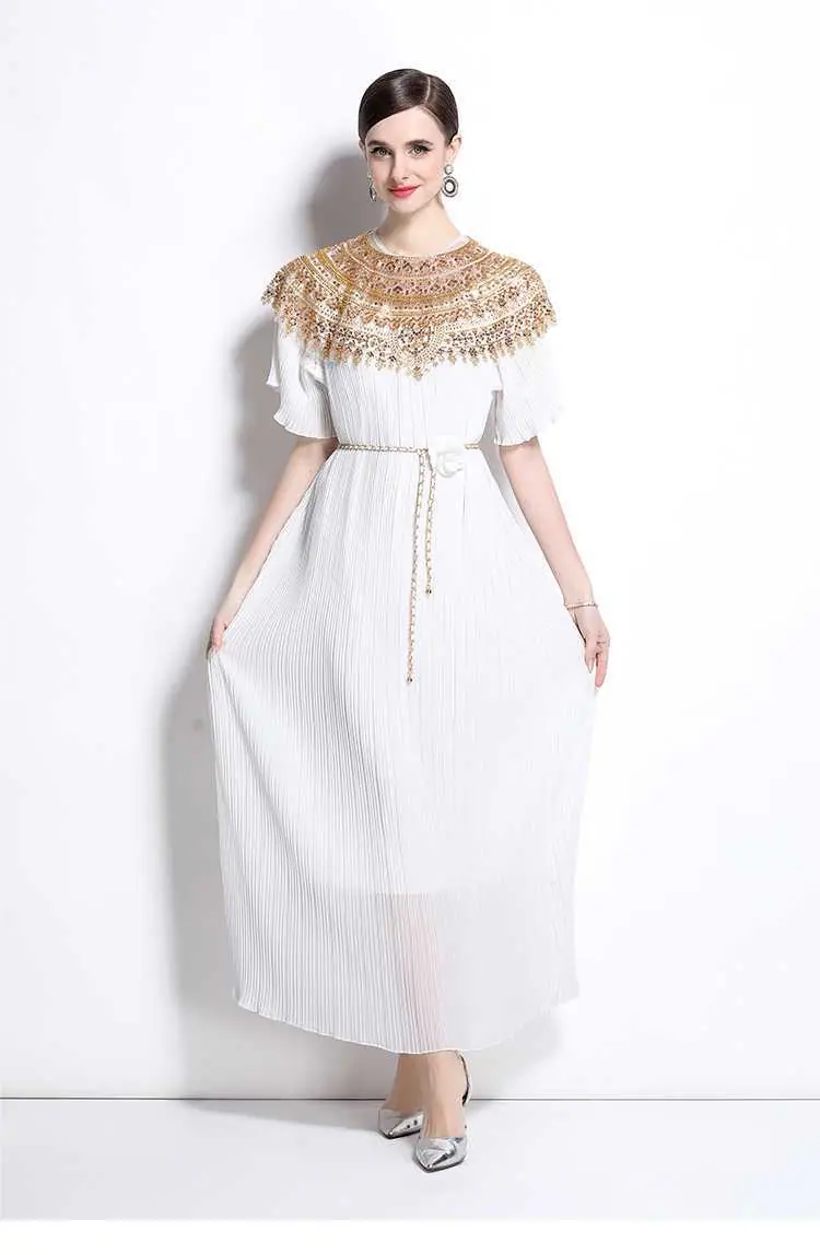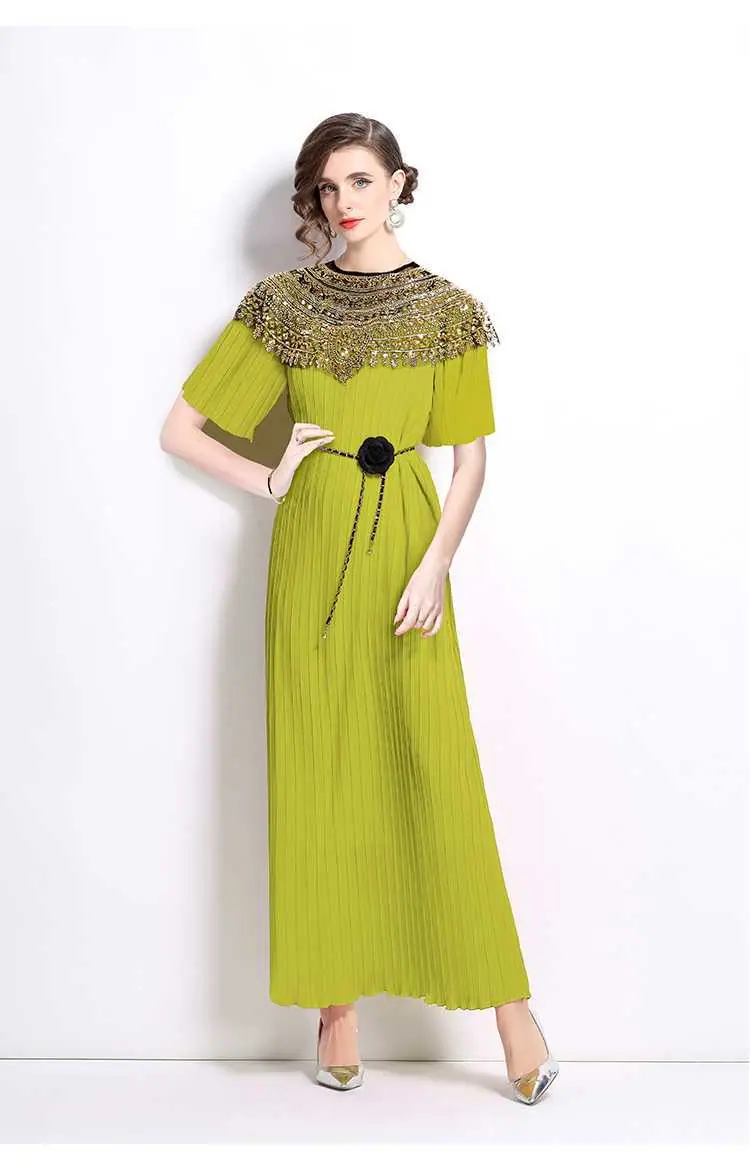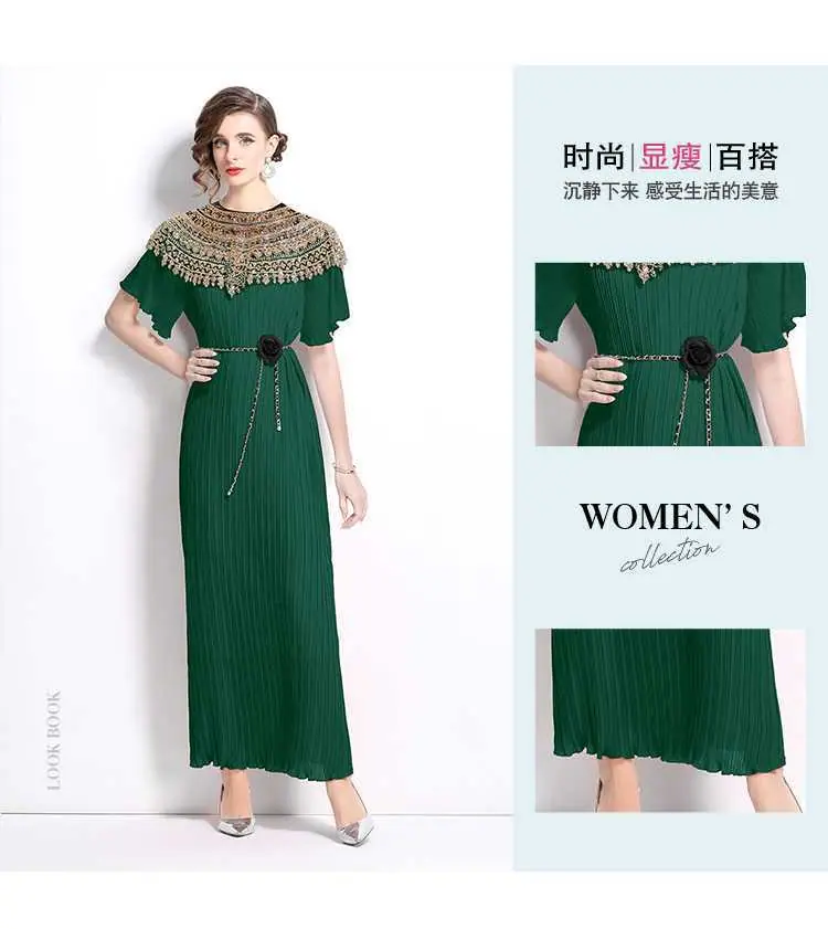 Vestido de Noite de Alta Costura Estilo Socialite 2025 Pesado Bordado Manga Lanterna Plissado Solto Longo
