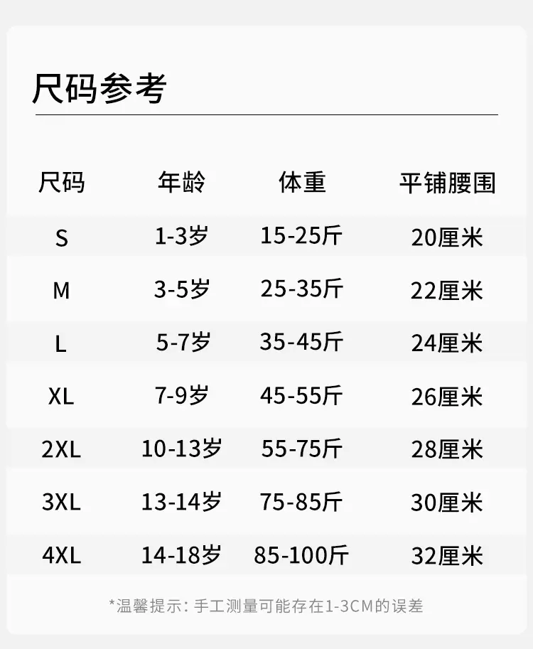 Size S 1-3 years old 15-25 catties, Size M 3-5 years old 25-35 catties, Size L 5-6 years old 35-45 catties, XL...