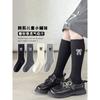 Meias de bezerro infantis de bordado de agulha dupla para primavera e outono, meias infantis femininas até o joelho com laço, meias de algodão para bebês e meninas no atacado