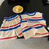 Roupa de verão infantil para meninos, roupa infantil de verão, colete listrado, conjunto, moderno, bonito, menina, bebê, roupa infantil de duas peças, atacado