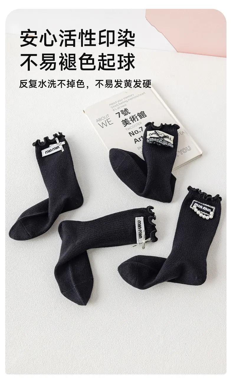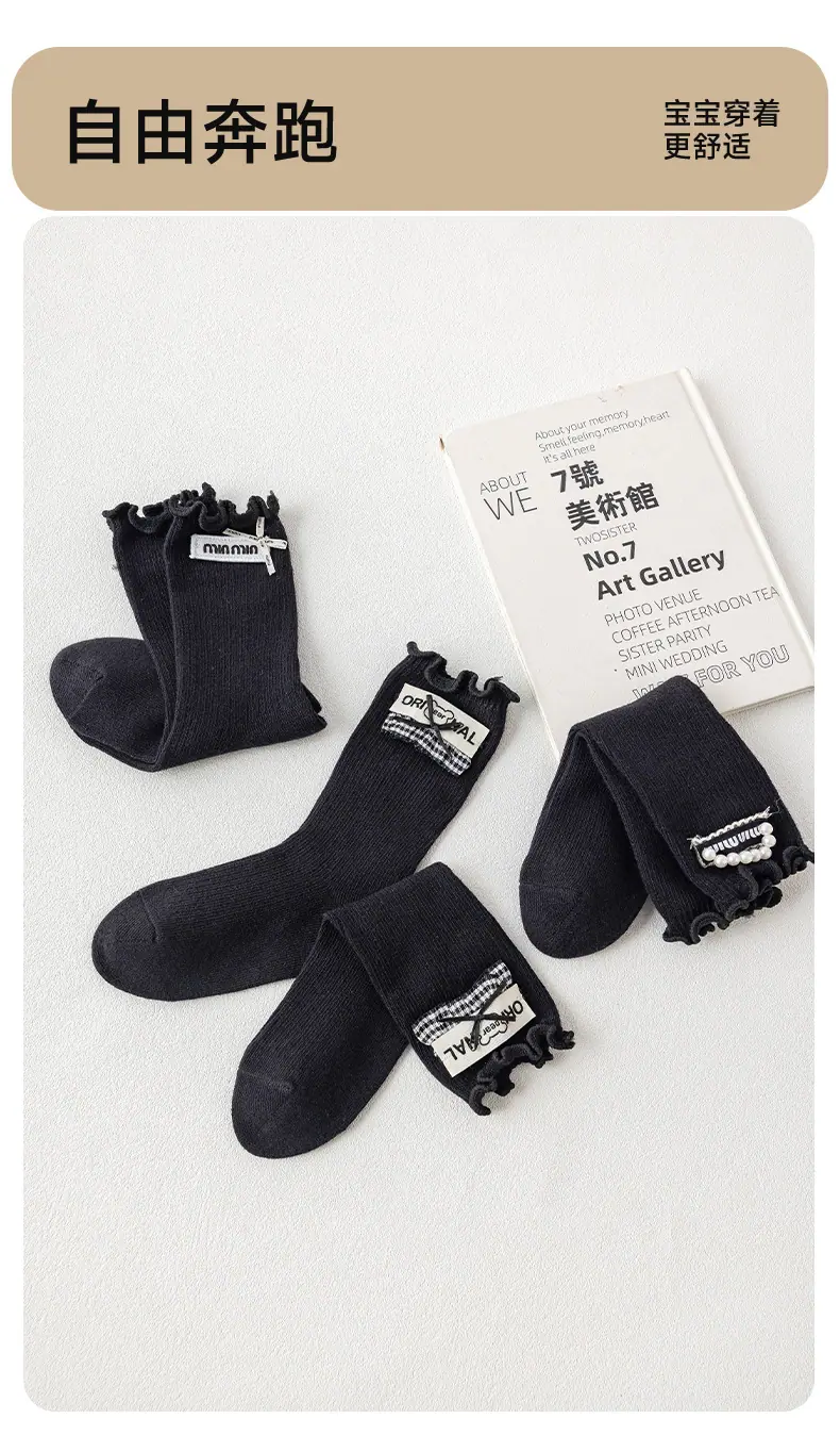 Meias de Menina Primavera e Outono Meias de Algodão Crianças Meninas Laço de Renda Meias de Princesa Bebê Menina Outono Moda Meias de Meia-Panturrilha