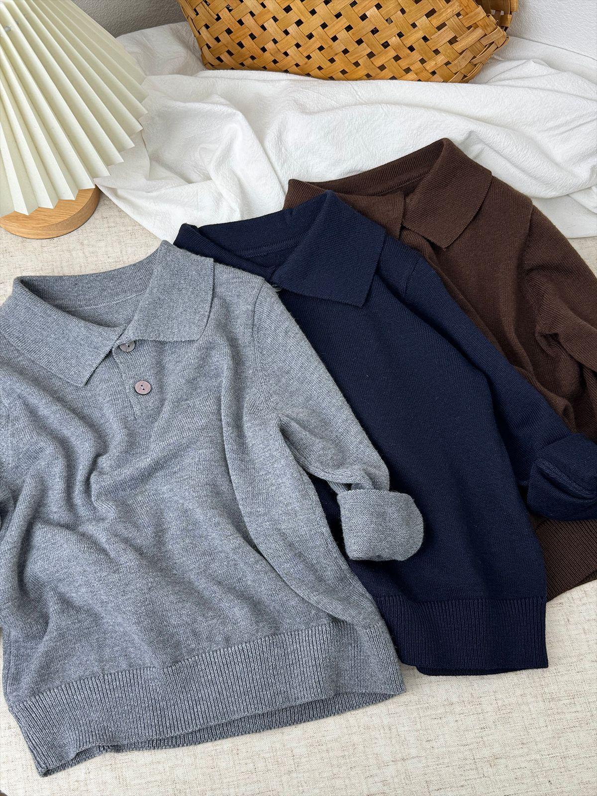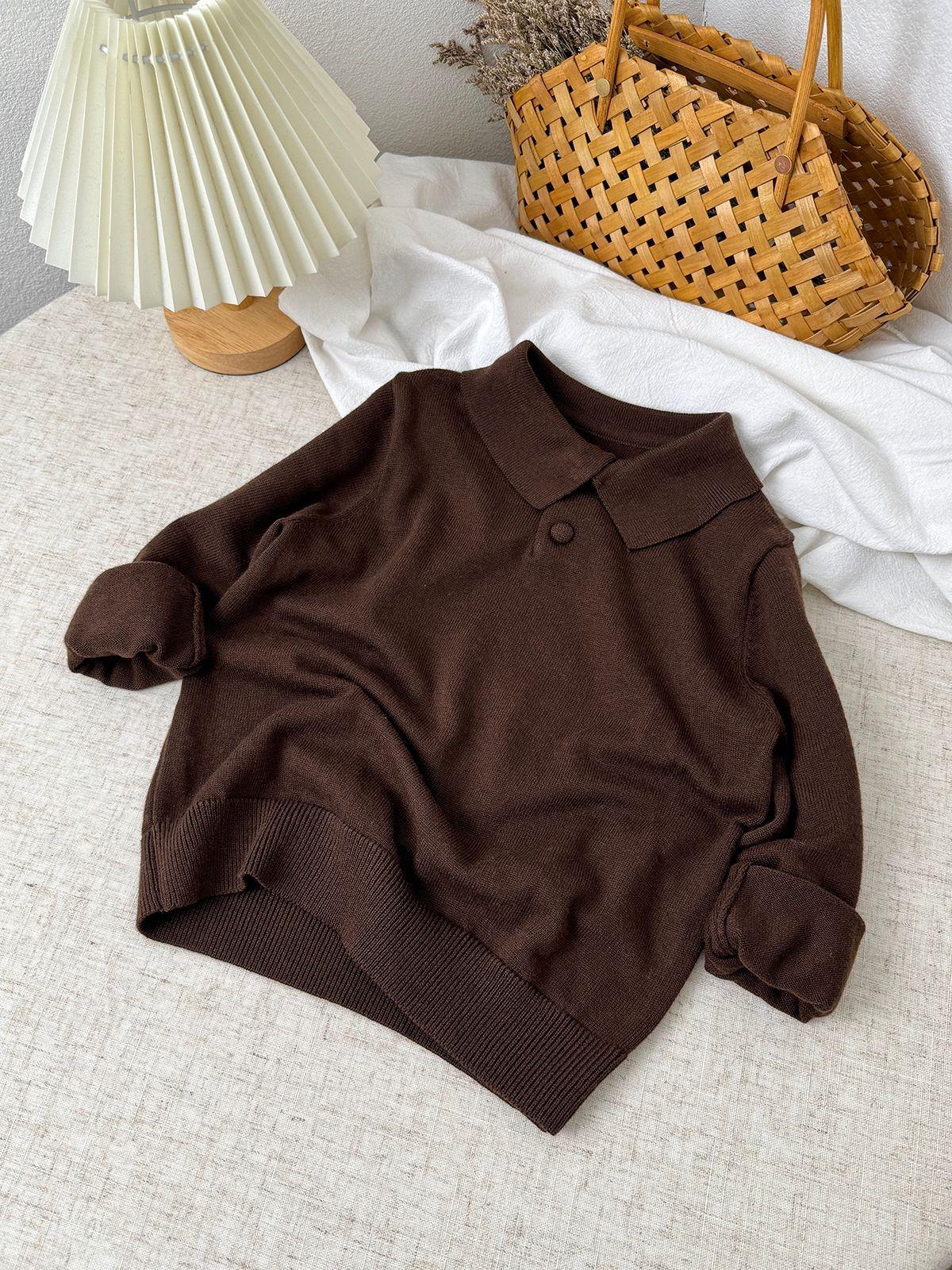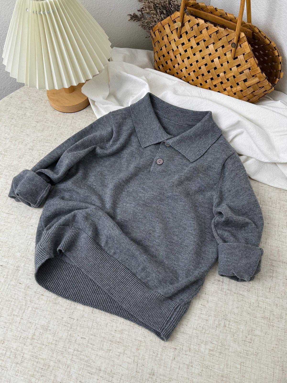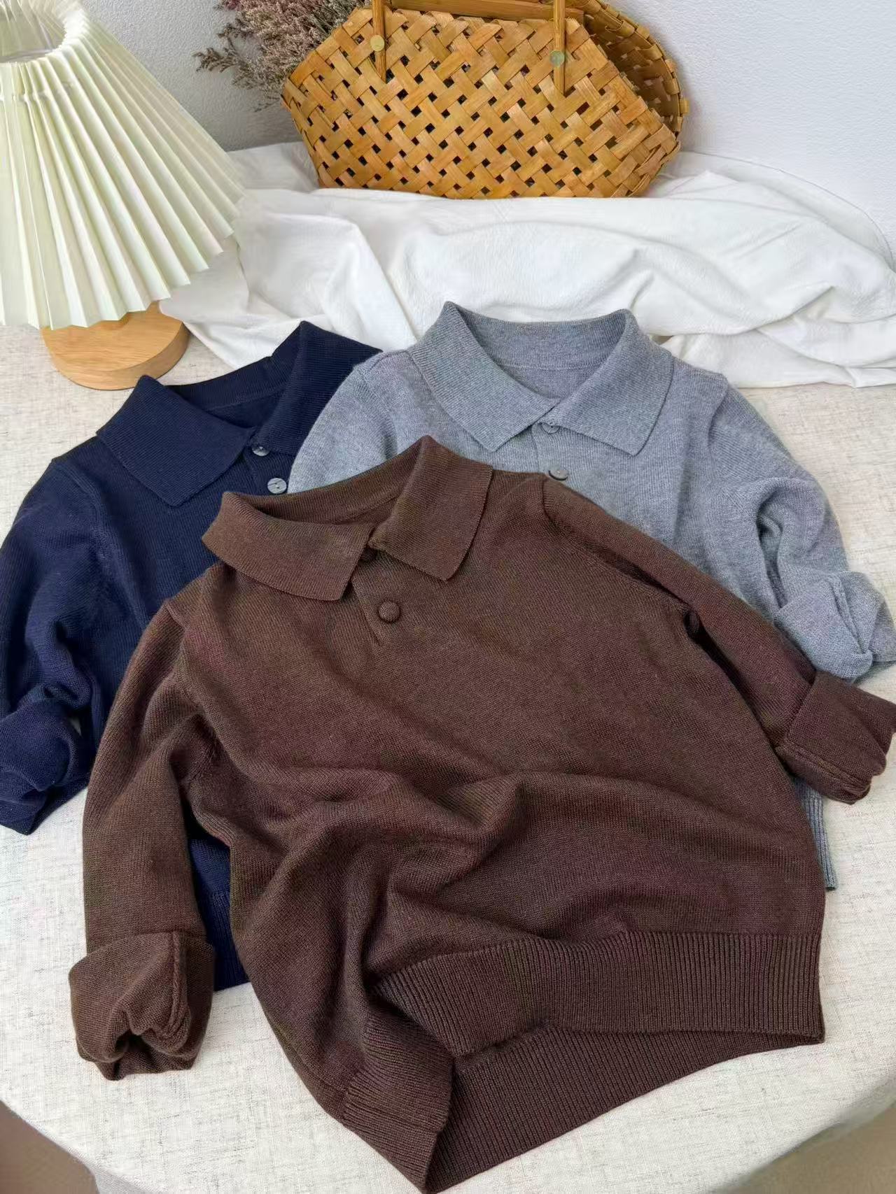 2025 Novo Outono e Inverno Tricô Infantil com Gola Polo Tricô de Lã para Meninos Tricô com Lapela Pequena Camiseta de Base para Bebê Menino