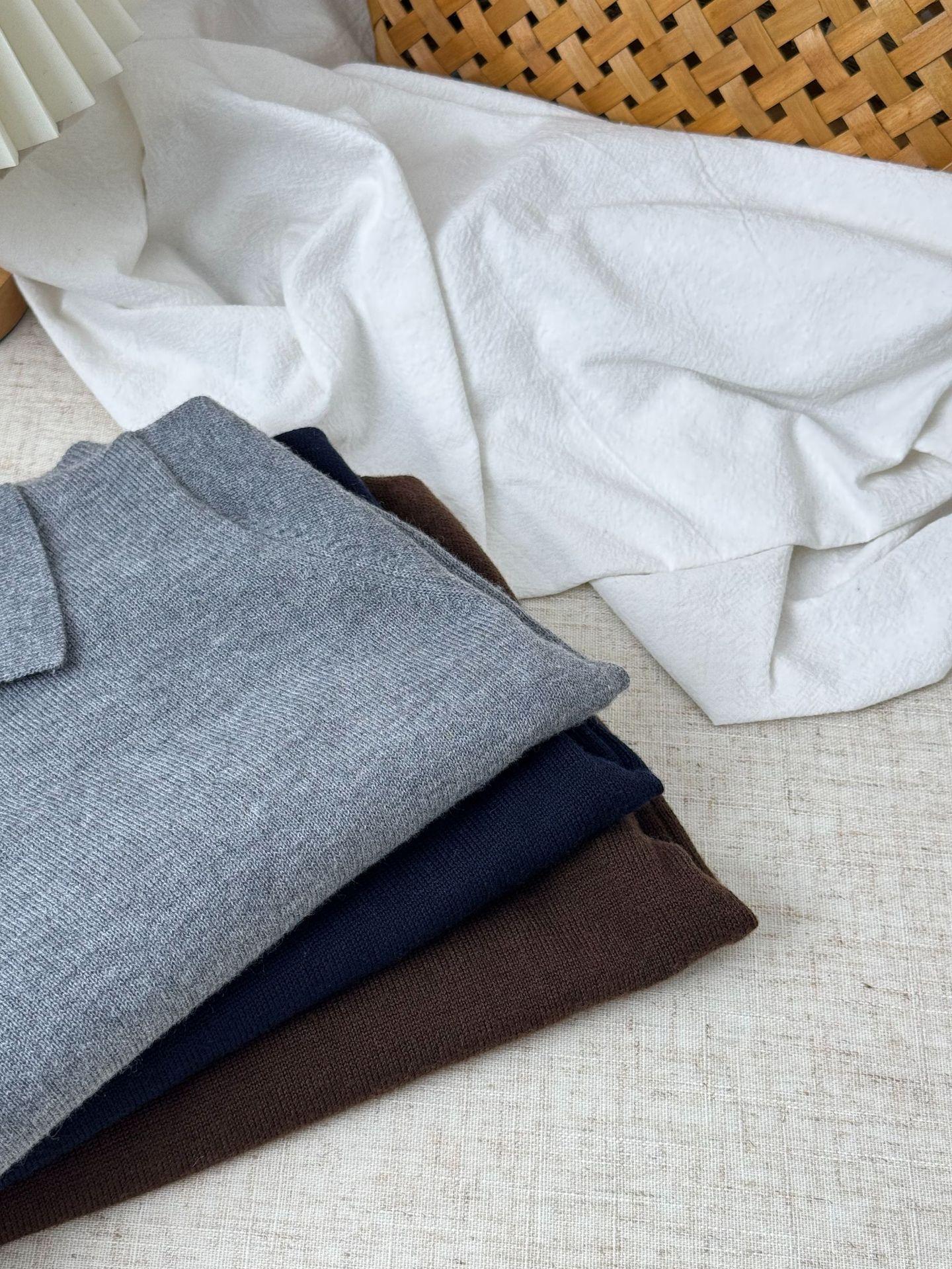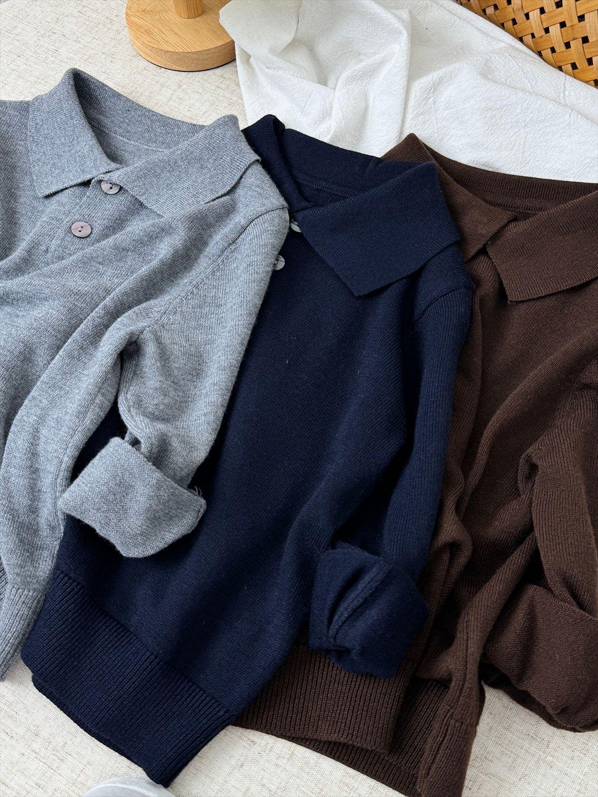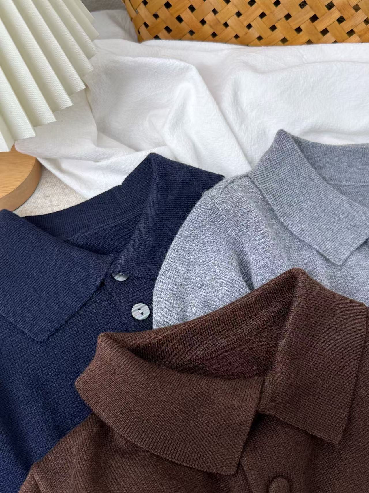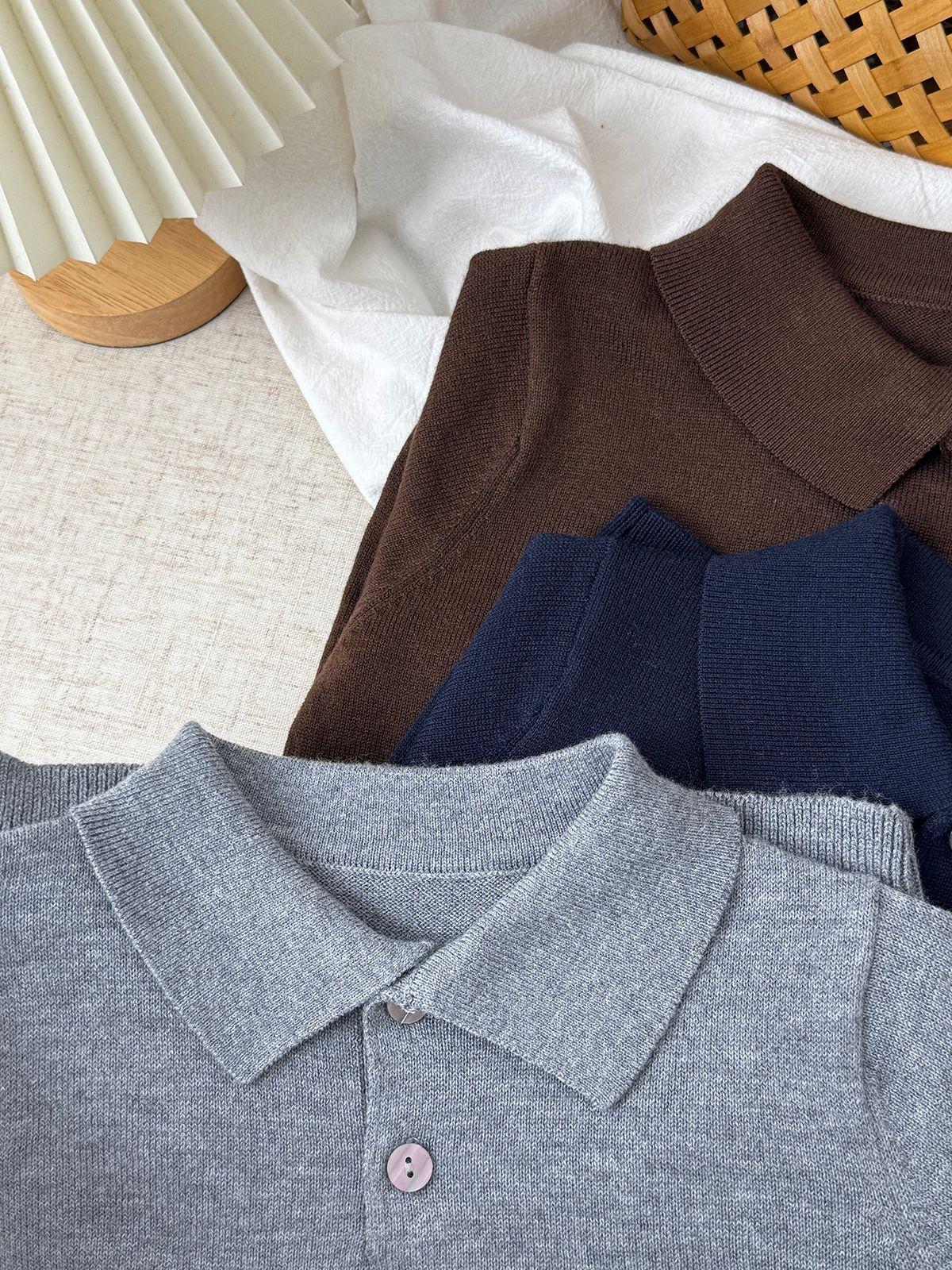 2025 Novo Outono e Inverno Tricô Infantil com Gola Polo Tricô de Lã para Meninos Tricô com Lapela Pequena Camiseta de Base para Bebê Menino