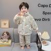 Pijama Infantil Menino Flanela Outono e Inverno 2025 Novo Bebê Menino Fleece Coral Roupa de Casa Fofo Conjunto de Flanela