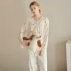 Pijama Fenton [Algodão para Dormir Antiestático] Feminino Primavera e Outono Algodão Puro Gola Redonda Manga Longa Conjunto Doce Casual Roupa de Casa