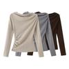 Suéter de Tricô com Ombro Assimétrico Plissado para Mulheres, Novo Estilo de Outono, Cintura Marcada, Camisa Base Slim-Fit, Top Versátil Estiloso