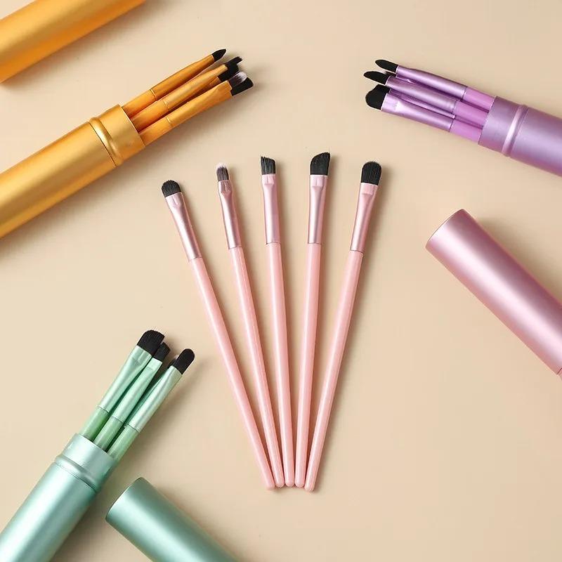 Conjunto de 5 Pincéis de Maquiagem Multifuncionais Rápidos + Balde, Adequado para Iniciantes ao Ar Livre Viagem Acampamento Ferramentas Cosméticas Portáteis