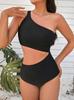 Amazon 2025 Europeu e Americano Cor Sólida Moda Modelador Maiô de Uma Peça Feminino Ombro Único Moda Praia