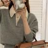 Suéter de Design de Nicho Elegante em Cor Contrastante Lapela Estilo Coreano Estilo Preguiçoso e Gentil Camisa de Tricô para Mulheres Outono e Inverno Roupa Íntima