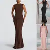 Compre Vestido Longo Plissado Slim Sem Mangas de Gola Redonda da Moda Europeia e Americana Transfronteiriça de Outono 2025 Sexy Sem Costas para Mulheres no atacado no Joom.pro