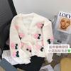 Cardigã Floral Tridimensional Solto Doce e Chic para Mulheres, Casaco Curto com Decote em V, Top Versátil de Moda para Primavera e Outono