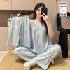 Compre Pijama Nova de Verão Feminina Algodão Nuvem Decote U com Bojo Manga Curta Estilo Quente Conjunto Doce de Três Peças Roupa de Casa no atacado no Joom.pro