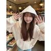 Jaqueta Moletom com Capuz Retrô Americana Coreana para Mulheres no Outono e Inverno, Estilo Preguiçoso Solto Listrado Contraste Cardigã Top Versátil
