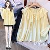 Blusa Feminina Franzida Redonda Plus Size, Novo Estilo Primavera e Outono, Rejuvenescedora, Emagrecedora, Ombro a Ombro para Meninas Cheinhas