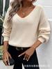 Roupa Feminina Transfronteiriça Europeia e Americana Suéter Decote V Cor Sólida Primavera e Outono Manga Longa Fresco e Doce Top com Laço nas Costas Estilo Mori Girl