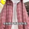 Jaqueta Gola Alta, Dupla Face, Feminina Primavera e Outono Xadrez Retrô Americano Casual Solta Estudante 2025 Novo Casaco de Casal