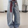 Comércio Transfronteiriço Americano High Street Retrô Lavado Bordado Rasgado Jeans para Homens e Mulheres com Design Solto e Pernas Largas Fashion
