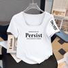 Camiseta Plus Size Decote Quadrado Estampa de Letras Manga Curta Feminina Verão Nova Estilo Coreano Solta Emagrecimento Versátil Simples Top