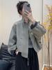 Jaqueta Curta de Algodão com Costura Xadrez Design Coreano para Mulheres 2025 Outono Nova Jaqueta Pequena Versátil Top