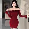 Vestido Sexy de Alça Única com Babados Estilo 'Pura Luxúria' para Mulheres Primavera e Outono Saia Justa que Abraça o Quadril Saia Curta Tomara que Caia