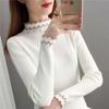 Tricô Gola Alta Metade com Base para Mulheres no Outono e Inverno Design de Manga Comprida Tops de Nicho Renda Tricô Branco