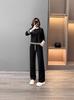 Traje Deportivo Casual de Alta Gama Europeo para Mujer Moda Primavera 2026 Top de Manga Larga Reductor de Edad y Pantalones de Pierna Ancha Conjunto de Dos Piezas