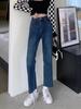 Calça Jeans Reta Larga de Cintura Alta Azul Lavado com Fenda para Mulheres, Novo Estilo Primavera 2026, Calça Longa Emagrecedora e que Aumenta a Altura