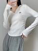 Camiseta Manga Longa Gola Polo 100% Algodão Ombro Direito para Mulheres Design Plissado Slim Assimétrico Top Curto para Primavera e Outono