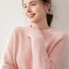 Suéter de Caxemira Feminino de Outono e Inverno com Gola Redonda Tricotado Grosso com Três Fios Pulôver Macio e Versátil Camiseta de Base Tricotada Top