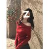 Blusa De Rong Estilo Coreano Suave Ombro a Ombro para Mulheres, Início do Outono 2026, Corte Justo, Toque de Luxo, Camiseta de Manga Longa com Base do Ombro Exposta