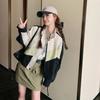 Jaqueta Curta Baseball Sanlida Casual Color-Blocking 2025 Patchwork para Mulheres, Estilo Americano Primavera e Outono Caimento Solto