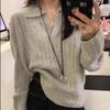 Suéter com Gola Polo Estilo Francês, Novo Suéter Solto Outono e Inverno, Tricô Versátil de Manga Longa com Gola Reversível Retrô
