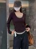 Camiseta Falsa de Duas Peças em Cores Contrastantes para Mulheres Início do Outono 2025 Novo Estilo Coreano Parte de Baixo Interna de Barra Alta Top de Ombro Direito