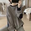 Moletom de Algodão Redutor de Idade para Mulheres no Outono Novo Estilo Coreano Pulôver Solto Emagrecedor Jaqueta Listrada de Manga Longa para Estudantes