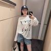 Camiseta Retrô Americana Divertida Estampada de Manga Comprida para Mulheres em Design Nicho de Outono Algodão Puro Fino Solto Casual Top