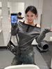 Look de Outono para Emagrecer Uma Manga Estilo Sexy Camiseta de Manga Longa para Mulheres Americana Off-Shoulder Listrado Design Chique Top