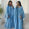 M339 Robe Árabe do Oriente Médio Dubai Vestido de Suspensório Moda Feminina + Cardigan Abaya Elegante Conjunto de Duas Peças