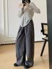 Calça de Trabalho Retro Americana para Mulheres, Primavera e Outono Cintura Alta Solta Reta Versão Estreita Comprimento Total Calças, Estilo Preguiçoso Caimento Solto Perna Larga Calças