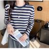 Camiseta Feminina de Algodão Listrada de Manga Longa Estilo Coreano para Primavera e Outono, Novo Top Versátil Solto Emagrecedor da Moda Ins
