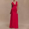 Amazon 2025 Nova Moda Verão Vestido de Cintura Sem Mangas com Gola Drapeada Saia Longa Lisa Sexy Plissada com Fita