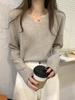 Suéter 2023 novo feminino primavera e outono V-neck botão manga comprida camisa top solto preguiçoso suéter outerwear
