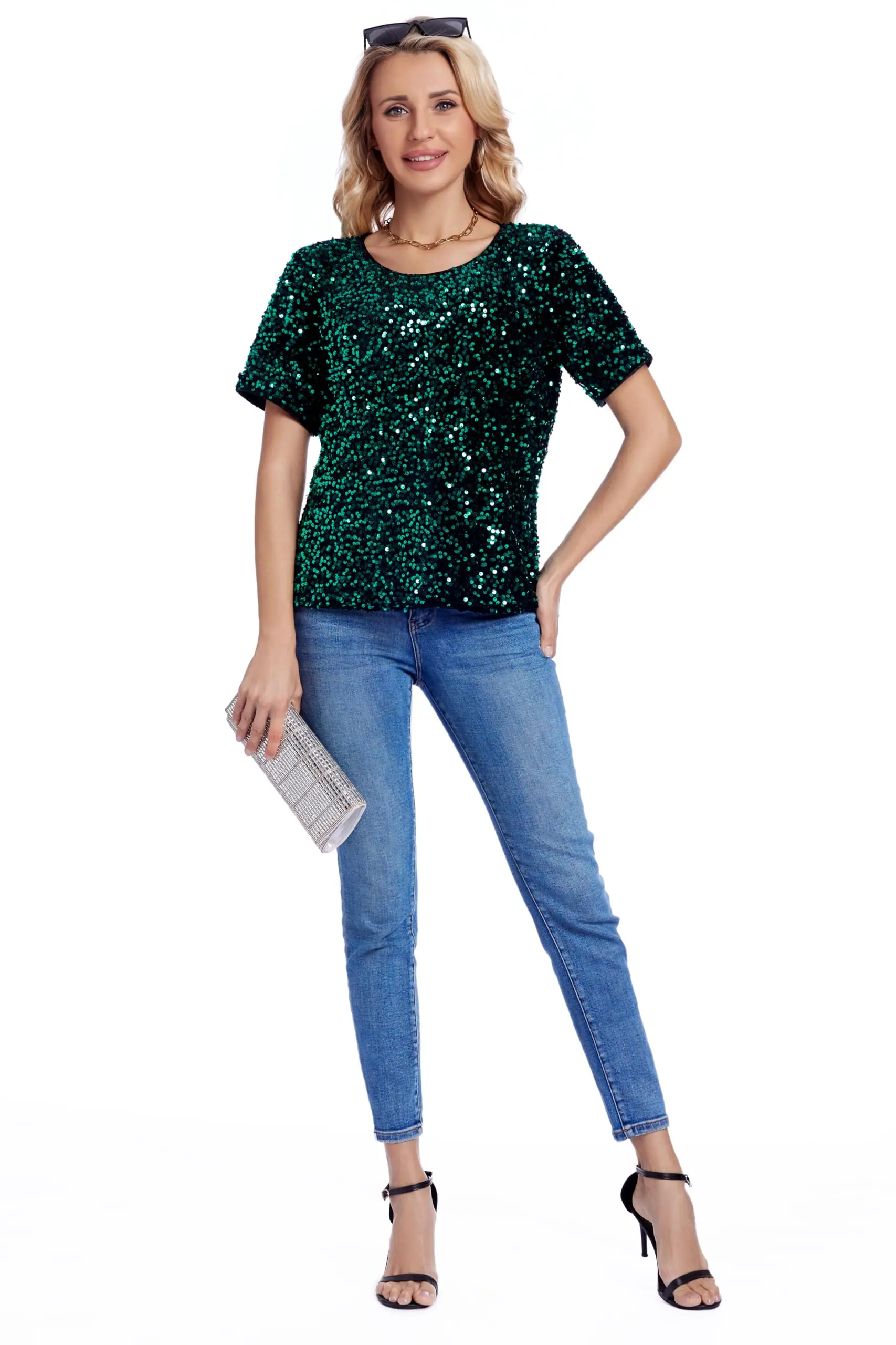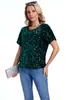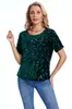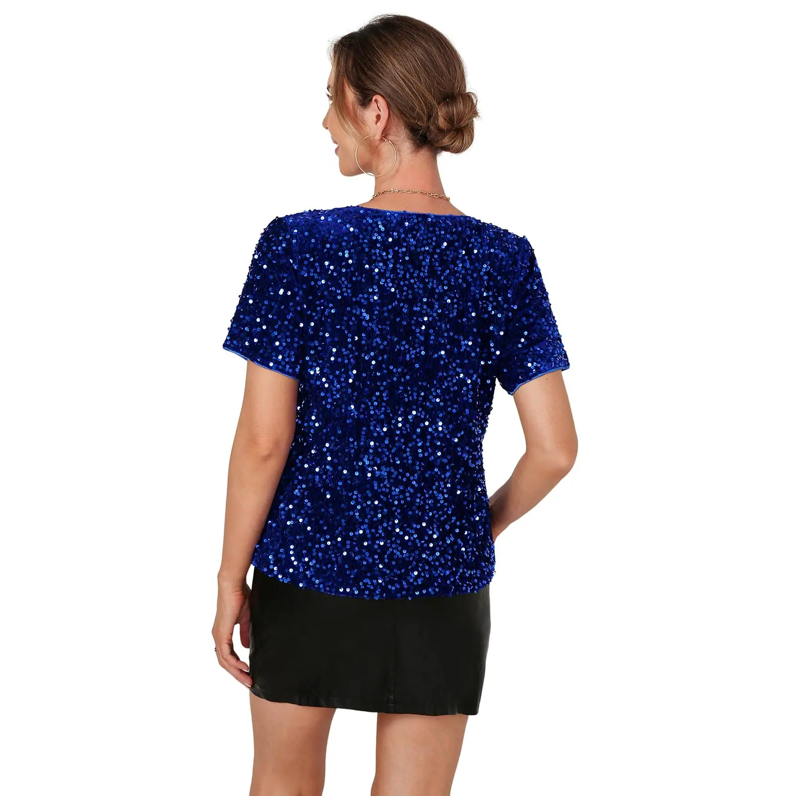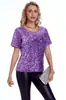 Características: As camisetas de lantejoulas de manga curta, gola redonda, material de veludo, forro macio e totalmente cobertas de lantejoulas. A camiseta de manga curta com design ajustado que complementa vários tipos de corpo, tornando-a uma peça básica versátil no guarda-roupa.