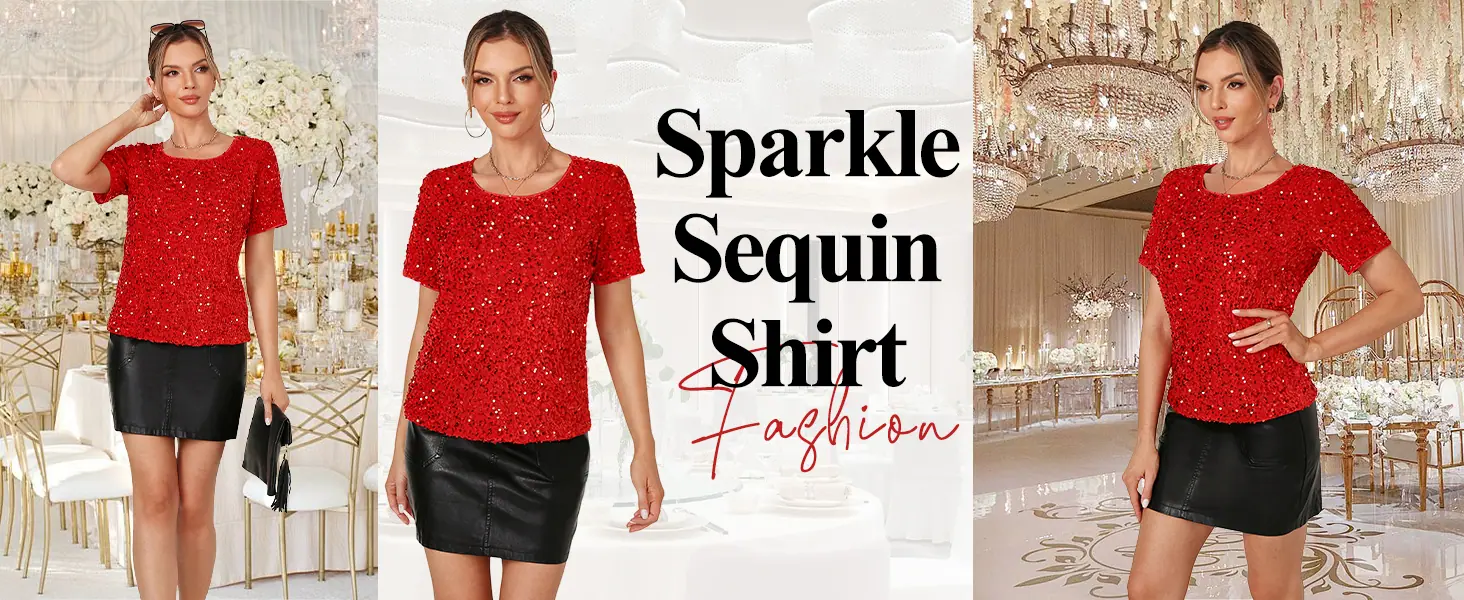 Jogo: O top de festa brilhante é combinado com calças de alfaiataria e saltos para um look chique e sofisticado que é perfeito para jantares ou eventos noturnos.. Para um visual mais casual, você pode usar as blusas casuais com jeans e botas de cano curto, adicionando um toque de brilho ao seu estilo cotidiano.. Alternativamente, a túnica de veludo pode combiná-la com uma saia lápis e acessórios marcantes para um look polido, adequado para o escritório.