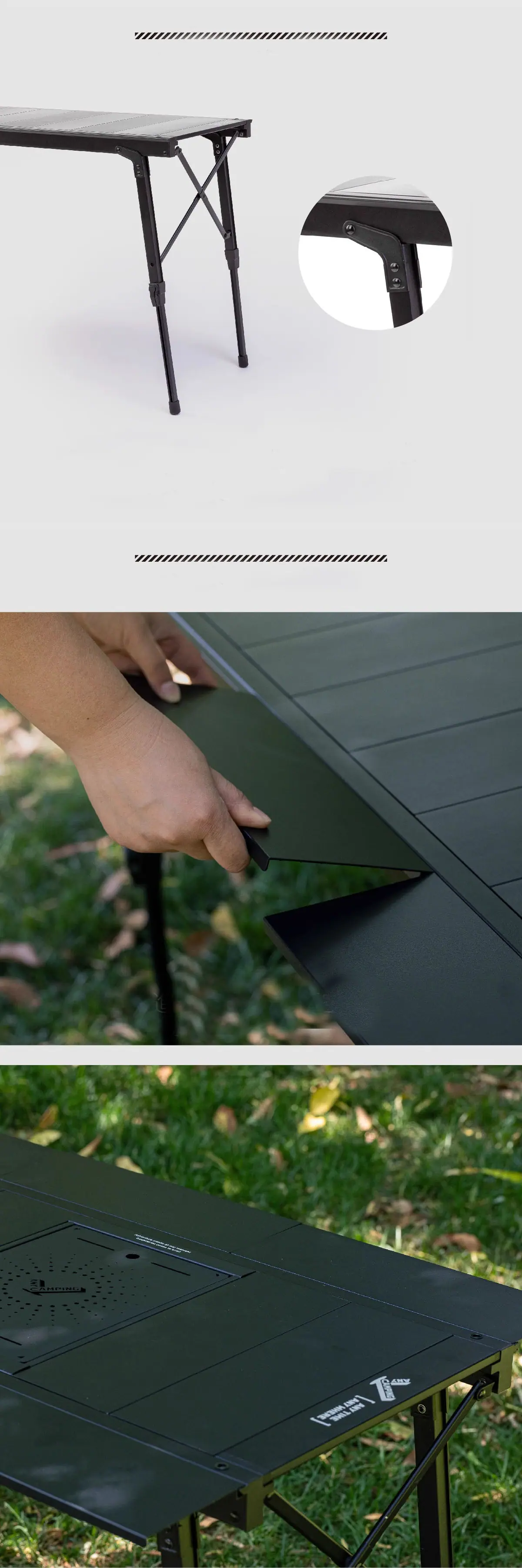 Principais pontos de venda: Design modular para expansão livre, mesa leve e portátil com pernas de altura ajustável.