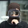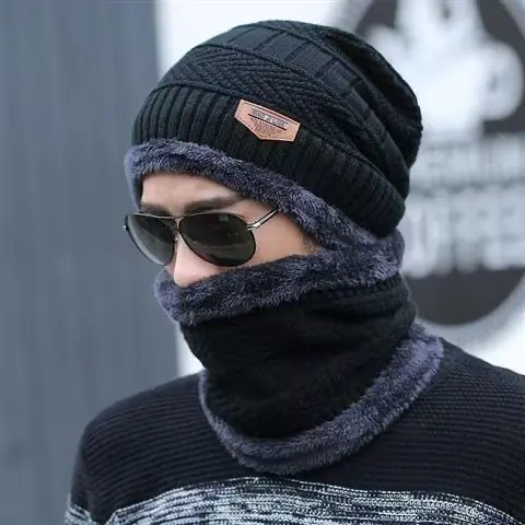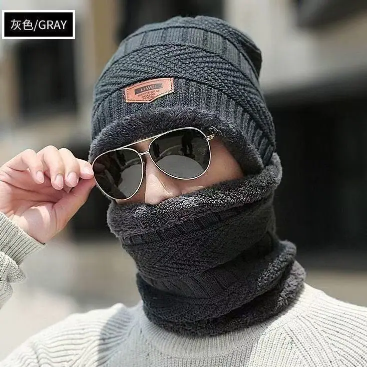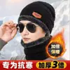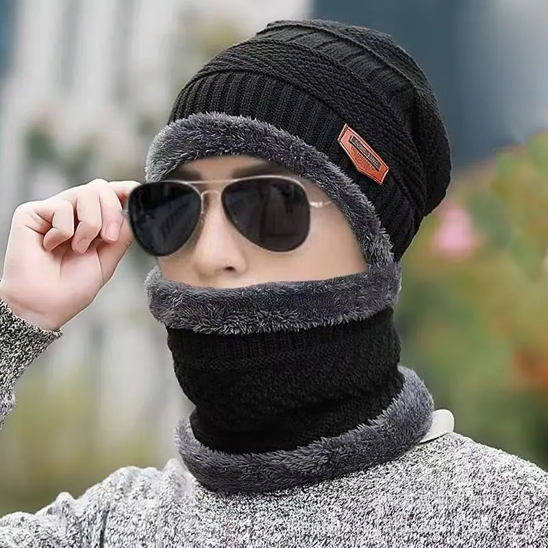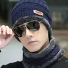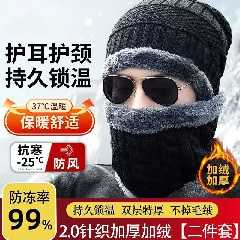 Touca de Inverno para Homens, Quente e à Prova de Frio, Forrada com Lã e Espessa, Chapéu de Algodão, Gorro de Tricô para Ciclismo, Conjunto de Duas Peças Protetor de Pescoço e Cachecol