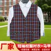 Colete Suéter Masculino Primavera e Outono Colete para Uniforme Escolar Tricô Tamanhos Médio e Grande Colete Infantil Camisa de Algodão Conjunto de Duas Peças