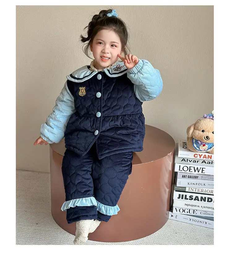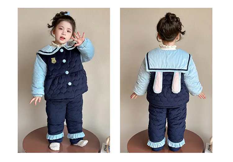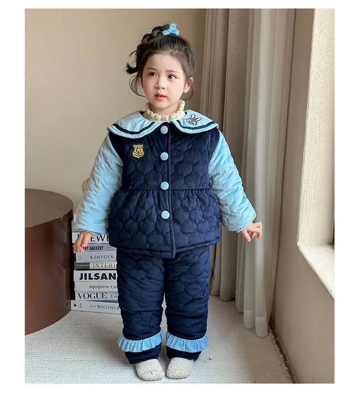 Compre Conjunto de Pijama Infantil de Três Camadas Acolchoado Espessado para Inverno Roupa de Casa Quente de Coelho Policial para Inverno no atacado no Joom.pro